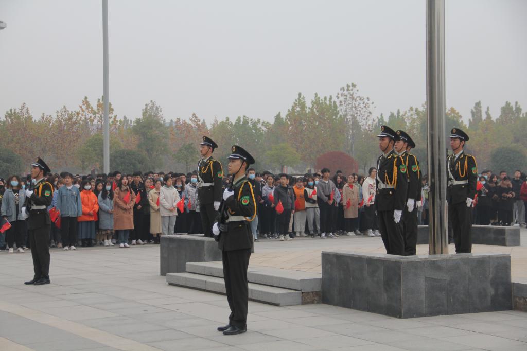 7时整,随着一声嘹亮的口令,英姿飒爽的国旗护卫队队员穿着整齐的制服,迈着铿锵有力的步伐,护送着鲜艳的五星红旗步伐坚定地向升旗台走去。伴随着雄壮的国歌,五星红旗冉冉升起,全体师生手持小红旗,深怀对祖国的无限热爱和崇高敬意向国旗行注目礼。