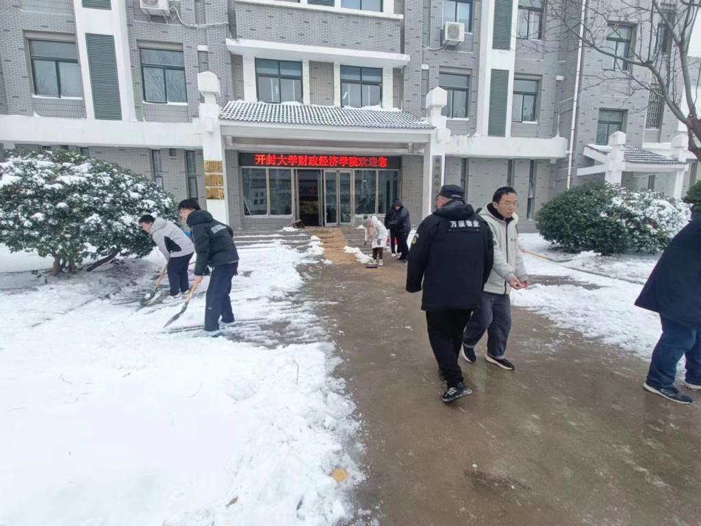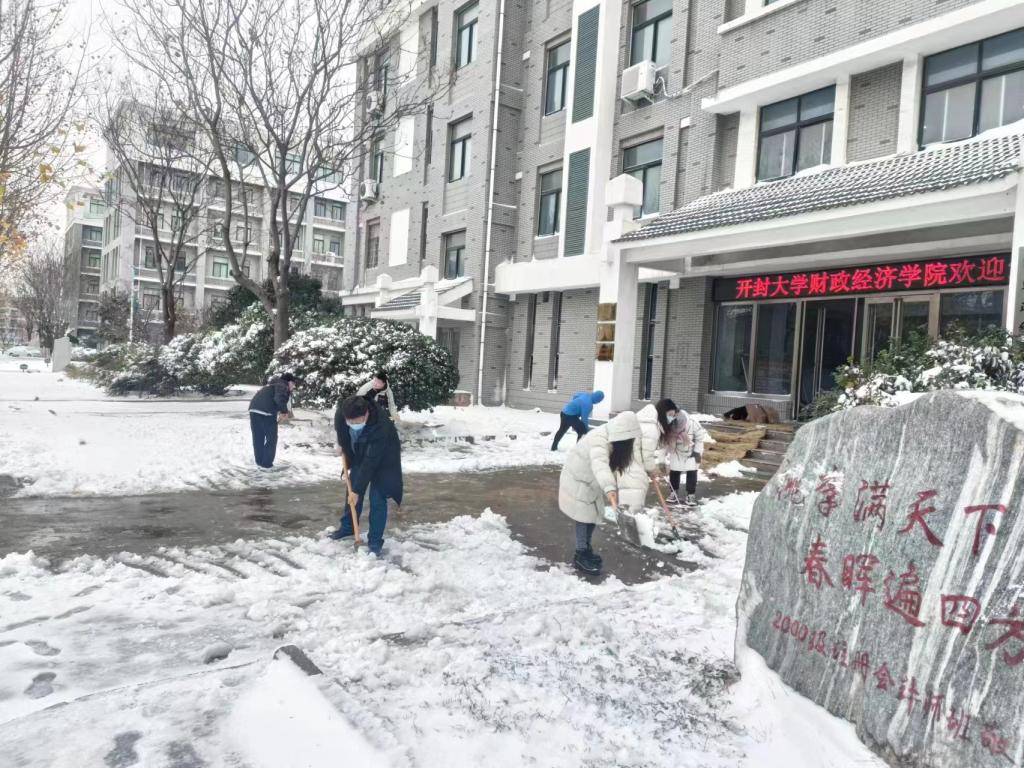 12月10日晚间,开封迎来一场大雪,整个校园银装素裹。为排除安全隐患,确保师生人身安全,财政经济学院组织开展扫雪活动。院长李国莉,副书记杨强,副院长吴娟、杨耀旭及全体辅导员、学生干部参加。