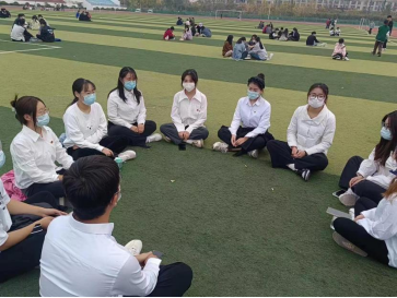 全体成员分成三支队伍,在运动场草坪上各自围成一个圈,由选定的组长按照活动既定流程及内容依次展开。首先,全体人员在组长的带领下,认真学习了习近平总书记在党的二十大报告中对青年的讲话内容。接着,同学们依次发表自己的感想,他们深受鼓舞,感受到了习近平总书记对青年的关心关怀,同时也深刻明白新时代青年身上肩负着全面建设社会主义现代化国家、全面推进中华民族伟大复兴的光荣使命和担当,纷纷表示将认真学习党的二十大报告精神,努力在民族复兴的接力赛中跑出当代青年的最好成绩。