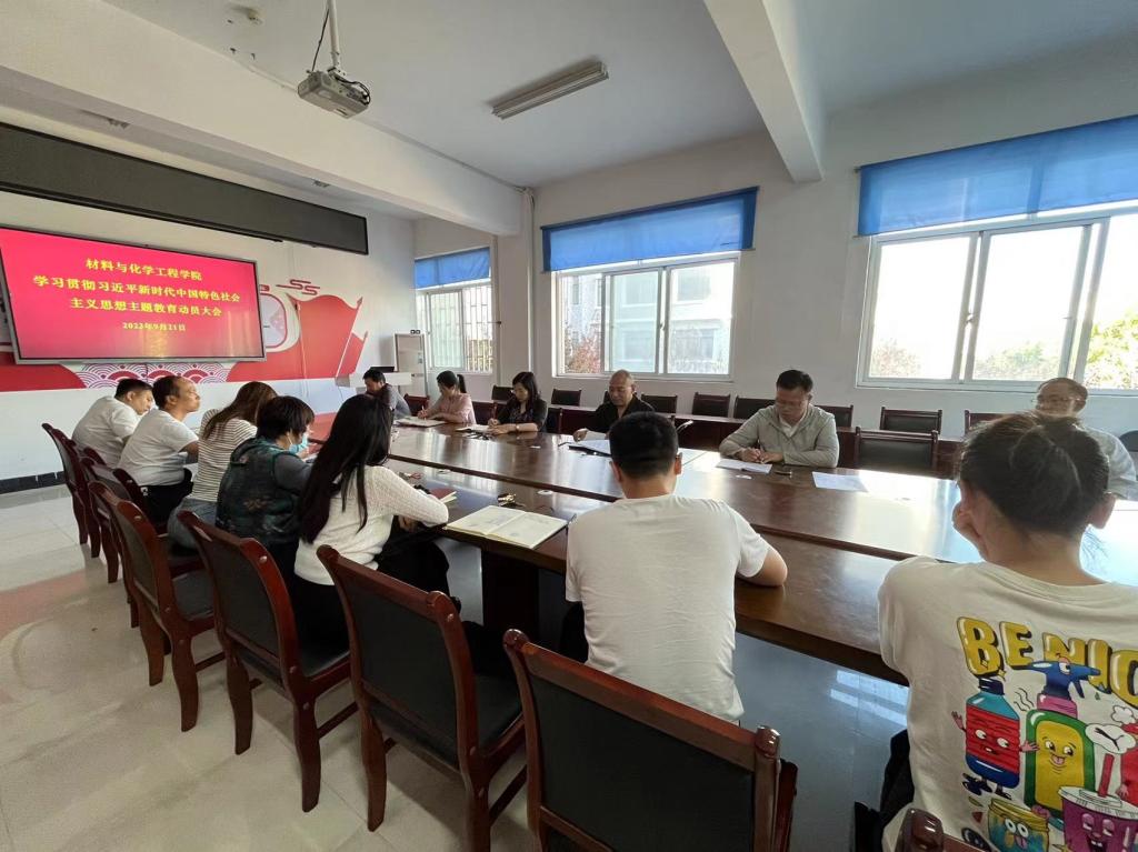 9月21日下午,材化学院在7号楼201会议室召开学习贯彻习近平新时代中国特色社会主义思想主题教育动员会,会议由党总支书记侯彦喜主持,院部领导班子和全体党员参加。