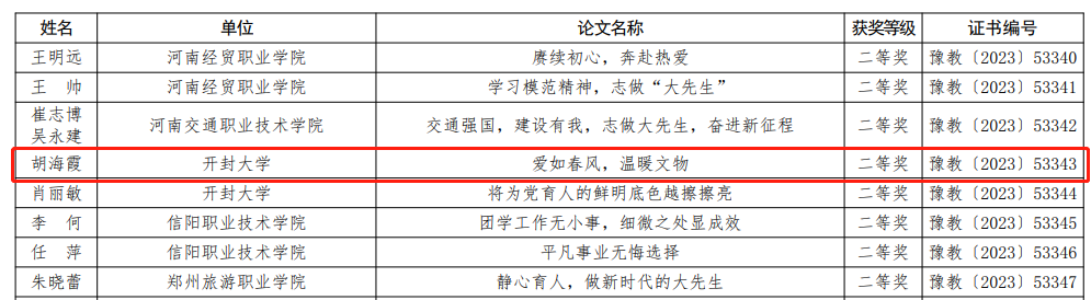 近日,河南省教育厅印发《关于公布“奋进新征程,志做大先生”师德主题教育征文、演讲比赛和师德师风优秀案例评选结果的通知》,365官网在征文评选中获多项荣誉。