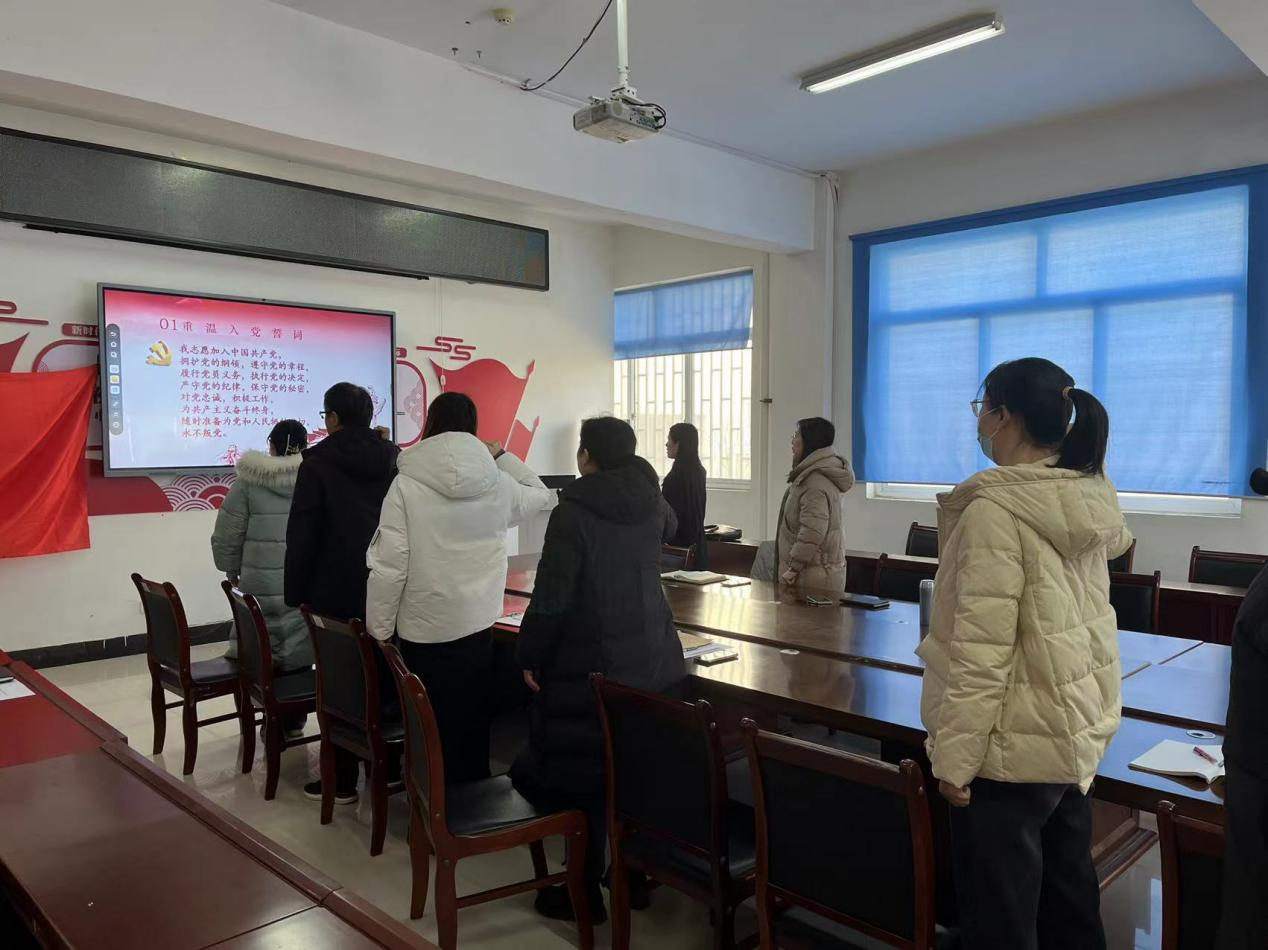 首先在教工一支部书记王丽同志带领下,面向党旗重温入党誓词。然后由胡海霞同志诵读《习近平总书记:扎实推动教育强国建设》(节选)。