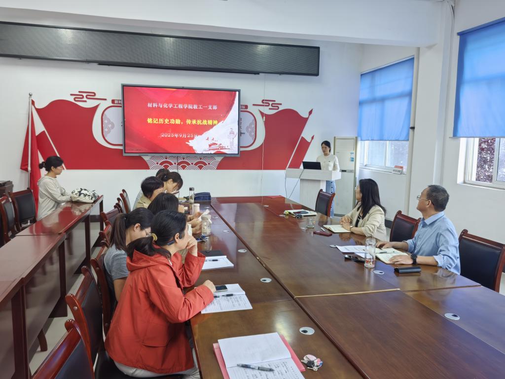 9月25日,材料与化学工程学院教工一支部隆重举行了“铭记历史功勋,传承抗战精神”主题党日活动。本次活动由教工一支部书记王丽同志主持。