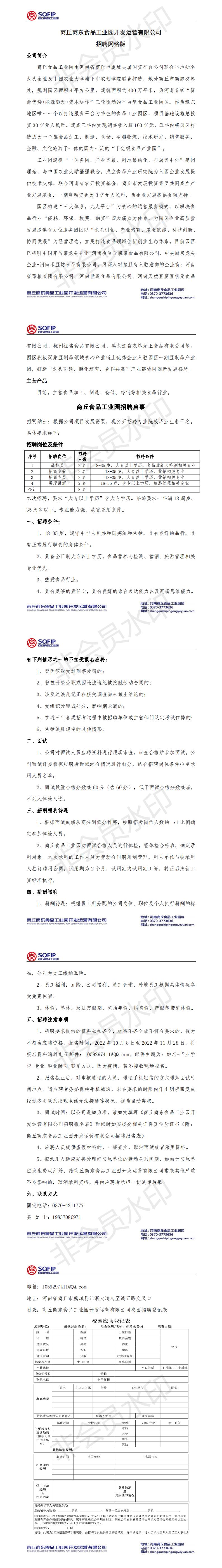 商丘商东食品工业园开发运营有限公司招聘信息