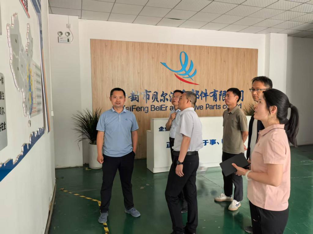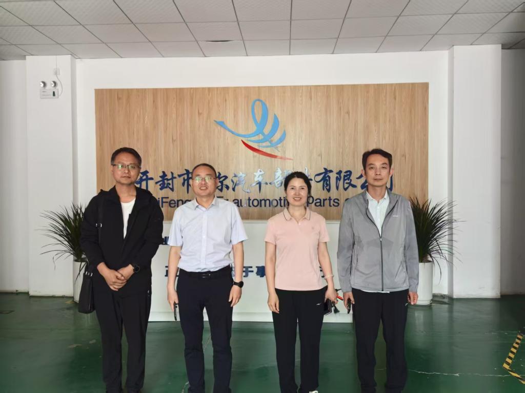 5 月 27 日上午,材料与化学工程学院党总支书记郝喜才、副院长王丽一行 4 人,前往开封市贝尔汽车部件有限公司开展访企拓岗活动,并就科研合作进行深入探讨。开封市科学院副院长刘圣亚、开封市贝尔汽车部件有限公司领导张金锐携公司技术骨干热情接待,双方进行了友好且富有成效的交流。