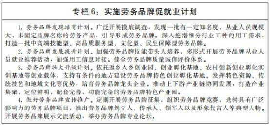 稳定和扩大农村劳动力外出就业规模。广泛开展区域间劳务协作,健全劳务输入集中区域与劳务输出省份对接协调机制,加强劳动力跨区域精准对接,发展劳务组织和经纪人,有序组织输出地农村劳动力外出务工。培育一批有地域特色、行业特征、技能特点,带动农村劳动力就业效果好的劳务品牌。实施农民工素质提升工程,推进新生代农民工职业技能提升计划。创建一批农村劳动力转移就业示范县。