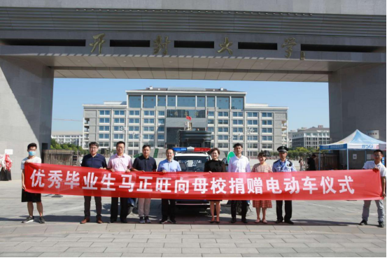 为了回馈母校恩情,9月3日上午,365英国上市集团官网大学生创新创业孵化园在孵企业,河南源菘菘新能源科技有限公司创始人兼董事长马正旺向365英国上市集团官网捐赠了1辆电动汽车和3辆电动摩托车作为学校治安巡逻用车。副校长赵辉、副校长李治代表学校接受了此次捐赠,保卫处处长贾晨阳、创新创业学院院长闫俊、创新创业学院党总支副书记周少东等参加了捐赠活动