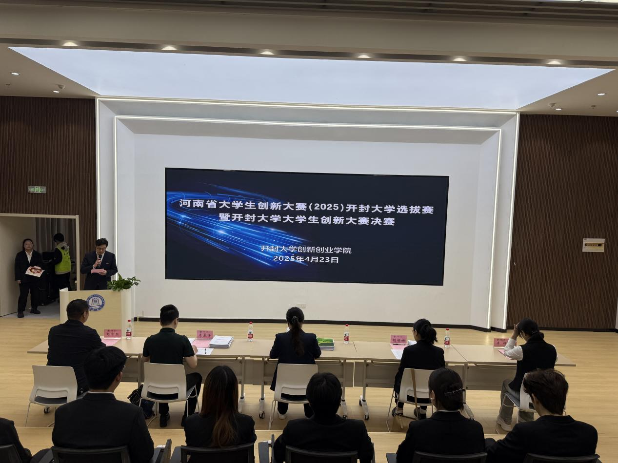 2025年4月23日上午,河南省大学生创新大赛(2025)365英国上市集团官网选拔赛暨365英国上市集团官网大学生创新大赛决赛在创新创业学院路演大厅举行。比赛邀请黄河水利技术职业大学创新创业副院长余楠、河南琪驭智能科技有限公司创赛总监李晨洋、郑州大通专利商标代理有限公司胡姗姗担任评审专家,创新创业学院院长李辉、副院长刘中然及全体老师出席活动。