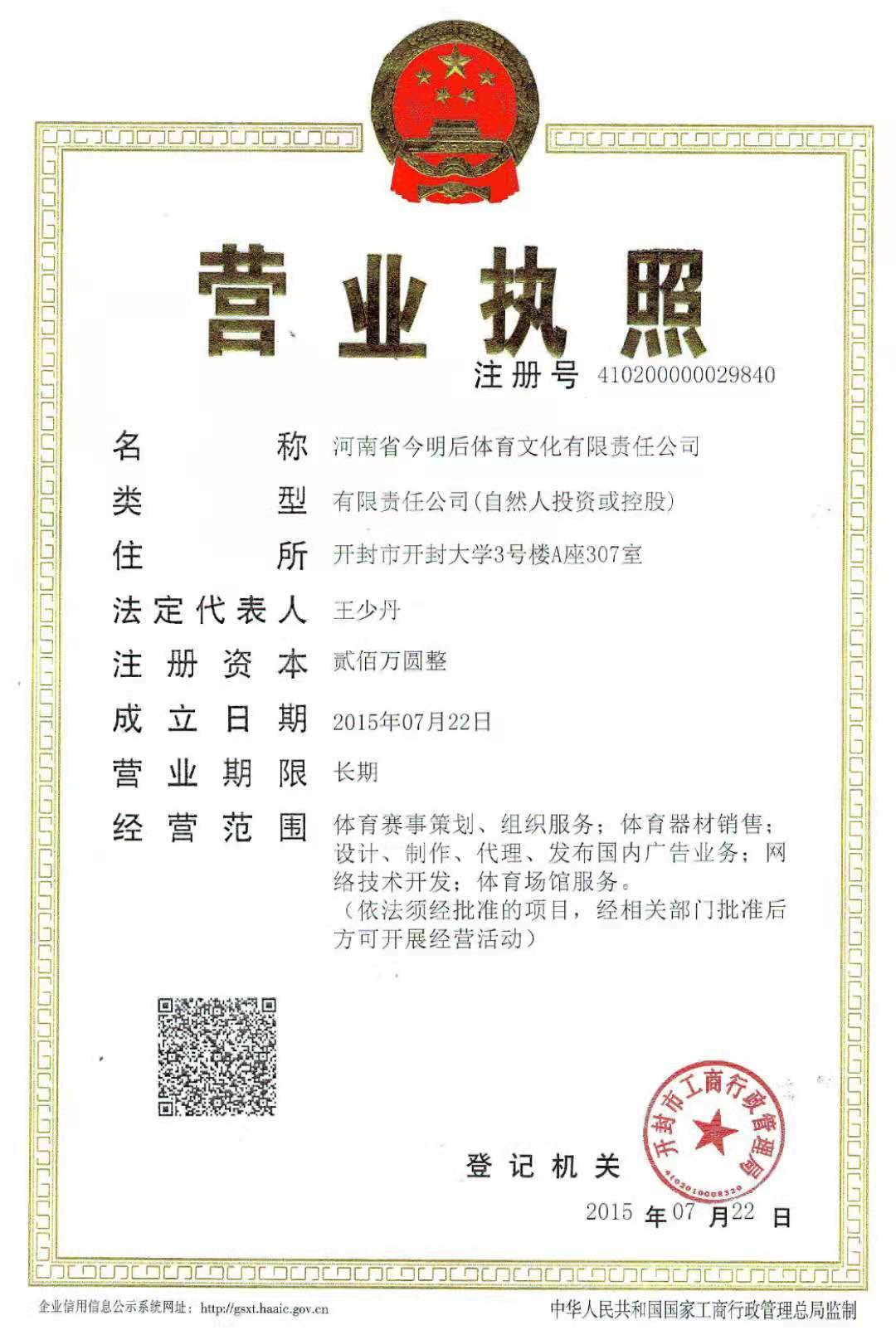 河南省今明后体育文化有限责任公司成立于2015年7月,