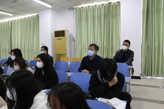 11月25日上午,在15号教学楼519教室,校长宋晓炜深入课堂,听马克思主义学院卢慧勇老师《习近平新时代中国特色社会主义思想概论》课程的讲授。督导室副主任郭军明一同听课。