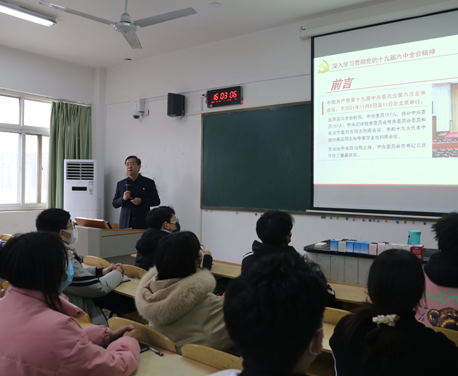 - 2022-01-02省委宣讲团成员罗士喜到校宣讲党的十九届六中全会精神