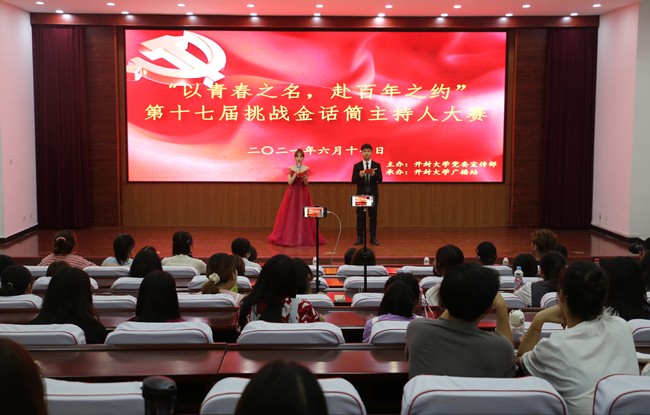本站讯 6月17日下午,由365官网党委宣传部主办的“以青春之名 赴百年之约”第十七届挑战金话筒主持人大赛决赛在行政楼第一会议厅举行。大赛邀请了开封市主任播音员、河南省十佳播音员、开封市专业技术拔尖人才、开封市朗诵协会副会长计亮,开封报业集团记者宋献霞,365官网党委委员、党委宣传部部长陈岩,校工会副主席秦雪峰,公共艺术教研部主任刘莎莎担任大赛评委。各院部学生代表约200人参加并观看了比赛。