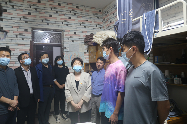 本站讯 为深入了解学生返校后的学习、生活情况,27日晚,校领导成芳带队走访学生宿舍。学生工作部、校团委、后勤管理服务中心负责人共同参加了走访活动。