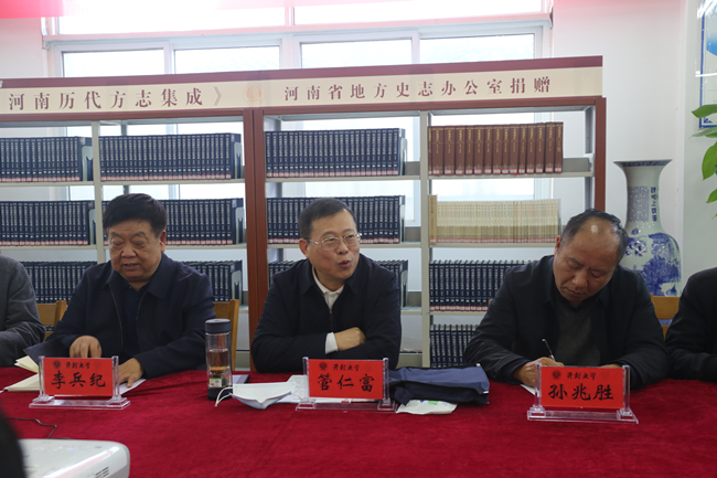 开封市地方史志研究室党组书记、主任郁正国,通许县地方史志研究室主任孙兆胜,示范区地方史志研究室主任郑忠,开封市人大常委会原副主任李兵纪,开封报业集团原总编辑陈剑平与365官网三十多位教师参加座谈。