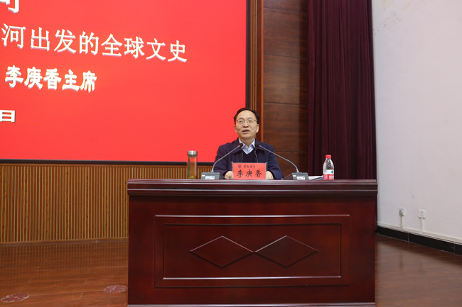 李庚香以《大哉黄河一一部从黄河出发的全球文明史》为题,围绕中原学与黄河学的关系、黄河文化研究应该聚焦的五大内容、黄河学的未来三个方面,详细介绍了黄河文明在中华文明中的重要地位,深刻阐释了传承弘扬黄河文化意义,强调了新时代背景下,我们的使命就是要建设文明黄河轴心区,书写一部从黄河出发的全球史,再塑黄河文化引领力,延续历史文脉,坚定文化自信,彰显中华民族本色,增强中华民族的底气,增进中华民族建构人类命运共同体的勇气,契合新时代高质量发展的内在要求,为最终实现中华民族伟大复兴的中国梦凝聚精神力量。