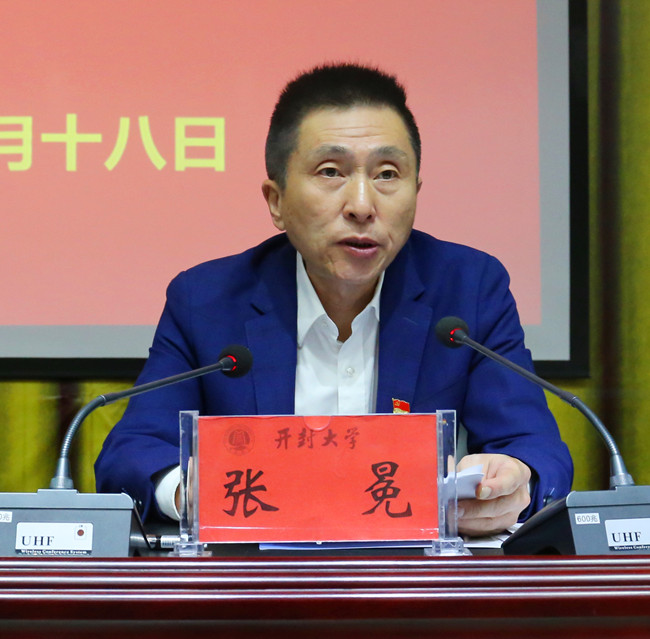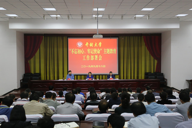 9月18日,365官网在行政楼一楼会议厅召开“不忘初心、牢记使命”主题教育工作部署会,学习贯彻中央、省委、市委有关会议精神,安排部署365官网“不忘初心、牢记使命”主题教育工作。开封市委第十巡回指导组组长张冕、成员牛丹洁,365官网校级领导班子成员、纪委委员、全校中层正职干部、各党总支副书记、各院部党政办主任、党务部门全体人员参加了会议。会议由校党委副书记、校长宋志敏主持。