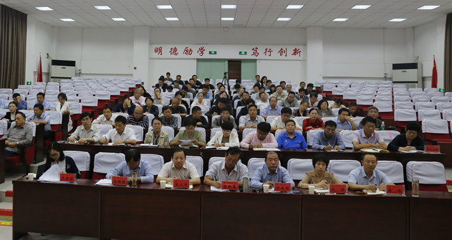 校党委书记陈灿做动员讲话。陈书记指出,学校党委对“不忘初心、牢记使命”主题教育高度重视。第一批主题教育启动以来,学校党委提前预热,主动抓了“五个跟进”:跟进筹备对接、跟进学习教育、跟进调查研究、跟进检视问题、跟进整改落实,为开展主题教育奠定了良好的基础。陈书记就开展好第二批“不忘初心、牢记使命”主题教育提出三点要求,一是高度重视,把握根本,确保思想认识到位。要深刻理解总书记提出的“四个迫切需要”,结合中央、省委、市委领导的讲话精神,根据学校实际,在思想上深刻认识第二批主题教育“有利于滋养初心”“有利于涵养党性”“有利于为党育人”的重大意义;二是对标对表,聚焦目标,确保主题教育各项工作落实到位。要严格按照总要求,结合目标任务,把四个重点措施贯穿主题教育全过程,做到“把学习教育贯穿始终,在感悟初心中溯源”“把调查研究贯穿始终,在恪守初心中前进”“把检视问题贯穿始终,在笃行初心中担当”“把整改落实贯穿始终,在践行初心中奋发”,确保主题教育在抓落实中见成效;三是强化责任,担当作为,确保组织领导到位。要强化责任落实,坚持统筹推进,力戒形式主义,加强宣传引导。通过主题教育活动,推动学校各项工作取得新成效,以优异成绩庆祝新中国成立70周年。