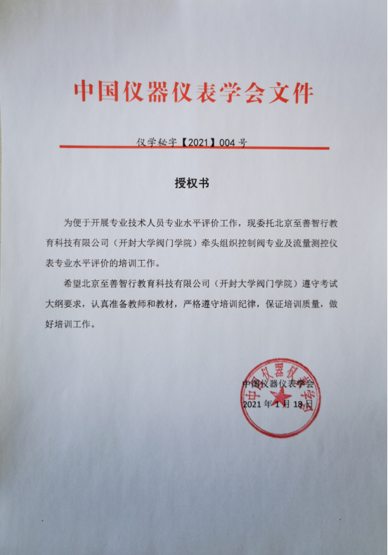 365英国上市集团官网阀门学院工程师水平评价培训中心获中国仪器仪表学会授权