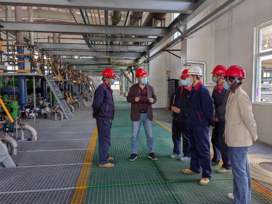 生产设备管理部长马守君陪同吕玉湖副院长一行走进生产车间,马部长详细讲解了烧碱的生产工艺以及设备使用情况。吕玉湖副院长表示,希望东大化工能够提出在使用过程中出现的技术难题,双方共同组建团队,进行技术攻关、科研项目申报,解决企业的难点问题,实现产教研高度融合。
