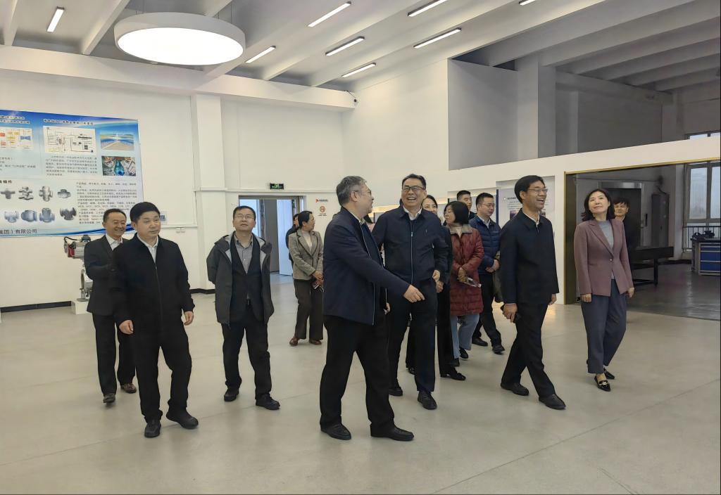 调研现场,阀门产业学院院长朱跃峰向刘胜院士及相关领导汇报了阀门产业学院的基本情况及学院特点。在获悉学院目前在人才培养、技术服务、行业培训以及宋都实验室建设等方面做出的成就后,他对阀门产业学院塑造新动能、新优势,推进产教融合高质量发展予以高度肯定。