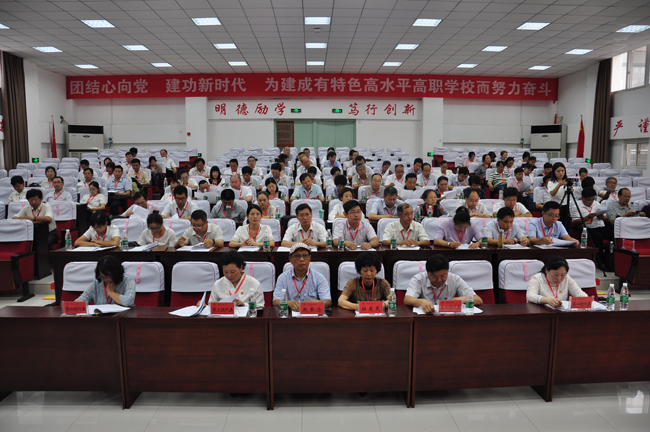 校党委书记陈灿致开幕词。陈书记指出,三届教代会召开以来,365官网在“办人民满意的高等学校”的教育实践中又取得了新的突破,积极推进省级示范性高等职业院校建设,大力实施高等职业教育创新发展行动计划和高等职业院校管理水平提升行动计划,各项事业均得到了健康、快速发展。校工会在上级工会的指导下,在校党委的正确领导下,充分利用自身在联系群众方面的优势,发挥桥梁纽带作用,紧紧围绕学校中心工作,凝心聚力,服务大局,认真履行民主管理、民主监督的职责,积极为教职工做好事、办实事、解难事,做了大量富有成效的工作,为和谐校园建设作出了突出贡献。对于本次教职工代表大会和工会会员代表大会的召开,陈书记代表党委提出了三点希望:一是充分发扬民主,畅所欲言,认真履行代表职责、行使代表权利,圆满完成本次大会的各项任务;二是聚焦学校短板和改革发展中遇到的突出问题,解放思想,开动脑筋,探寻对策;三是着眼职业教育发展大局,为学校决策提供强有力的支持。陈书记要求全校必须紧跟教育部的指挥棒转,加快补齐短板,跟上教育现代化的步伐,抓住机遇,树立信心,振奋精神,励精图治,为实现创建特高学校的目标而努力奋斗。