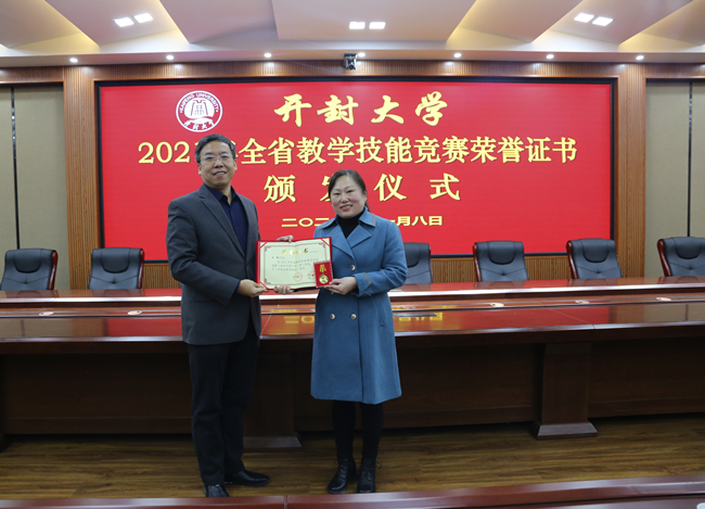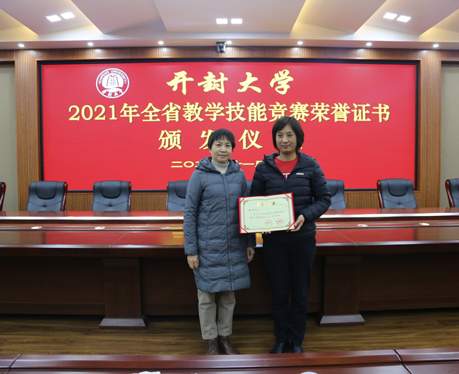 365官网青年教师在河南省总工会、河南省教育厅联合举办的2021年全省教学技能竞赛中获得优异成绩。人文学院王茜老师获高校文科一等奖,并被授予“河南省教学标兵”称号;财政经济学院张俐老师获高校经管科二等奖;材料与化学工程学院娄童芳老师获高校工科三等奖,取得了365官网在此大赛中新突破。