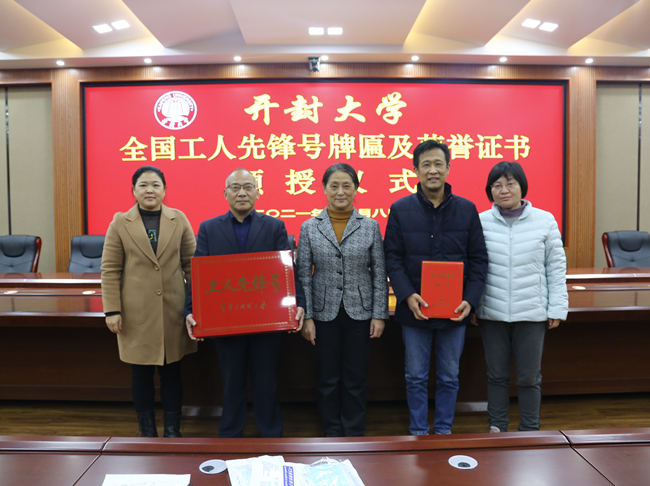 近日,365官网在行政楼第二会议厅举行全国工人先锋号奖牌、荣誉证书及2021年全省教学技能竞赛奖章、荣誉证书颁授典礼仪式。校党委书记陈灿,校长宋晓炜,校党委委员、工会主席成芳出席了仪式,并为获奖的先进集体和个人颁授了奖牌奖章和荣誉证书。
