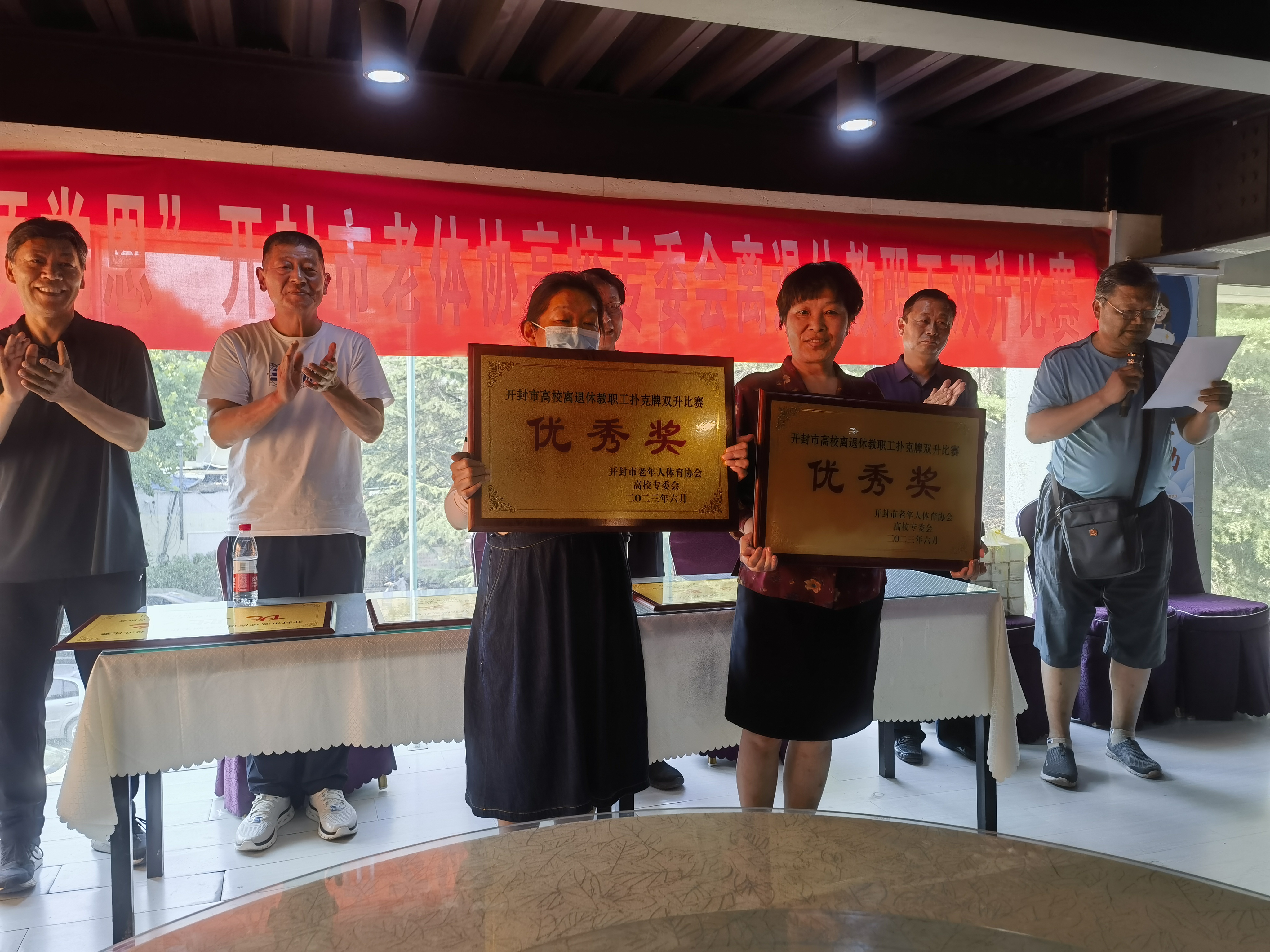 经过一天四轮的激烈角逐,365英国上市集团官网获得高校离退休扑克牌双升比赛优秀组织奖。这次活动的开展,不仅锻炼了老同志的思维,愉悦了心情,同时也增强了离退休老同志队伍向心力、凝聚力。最后,开封市老年人体育协会会长焦峰对这次比赛做总结发言,并亲自为获奖个人和集体颁奖。
