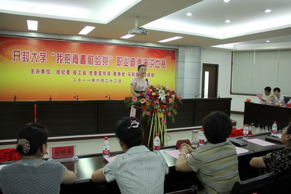 6月22日下午,365官网在行政楼二楼会议厅举办“我把青春献给党”职业道德演讲比赛活动。全校各分工会共有22名教职工选手参加了演讲比赛。校领导万是明、赵辉、范金梅、何世玲、耿广利、成芳,全体工会委员,各分工会主席,教职工代表聆听了全场演讲比赛。