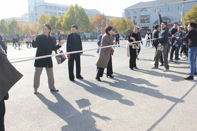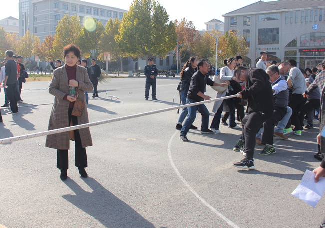 在阳光明媚、菊韵飘香的时节,为活跃教职工生活,校工会于11月14日在西苑餐厅东篮球场举行了2019年教职工拔河比赛。校党委书记陈灿亲临现场为参加比赛的教职工加油助威,校工会主席成芳主持拔河比赛,副校长李治亲自参加比赛。体育教研部抽调了十几名骨干教师作为比赛活动裁判,工会工作人员全力以赴组织比赛。