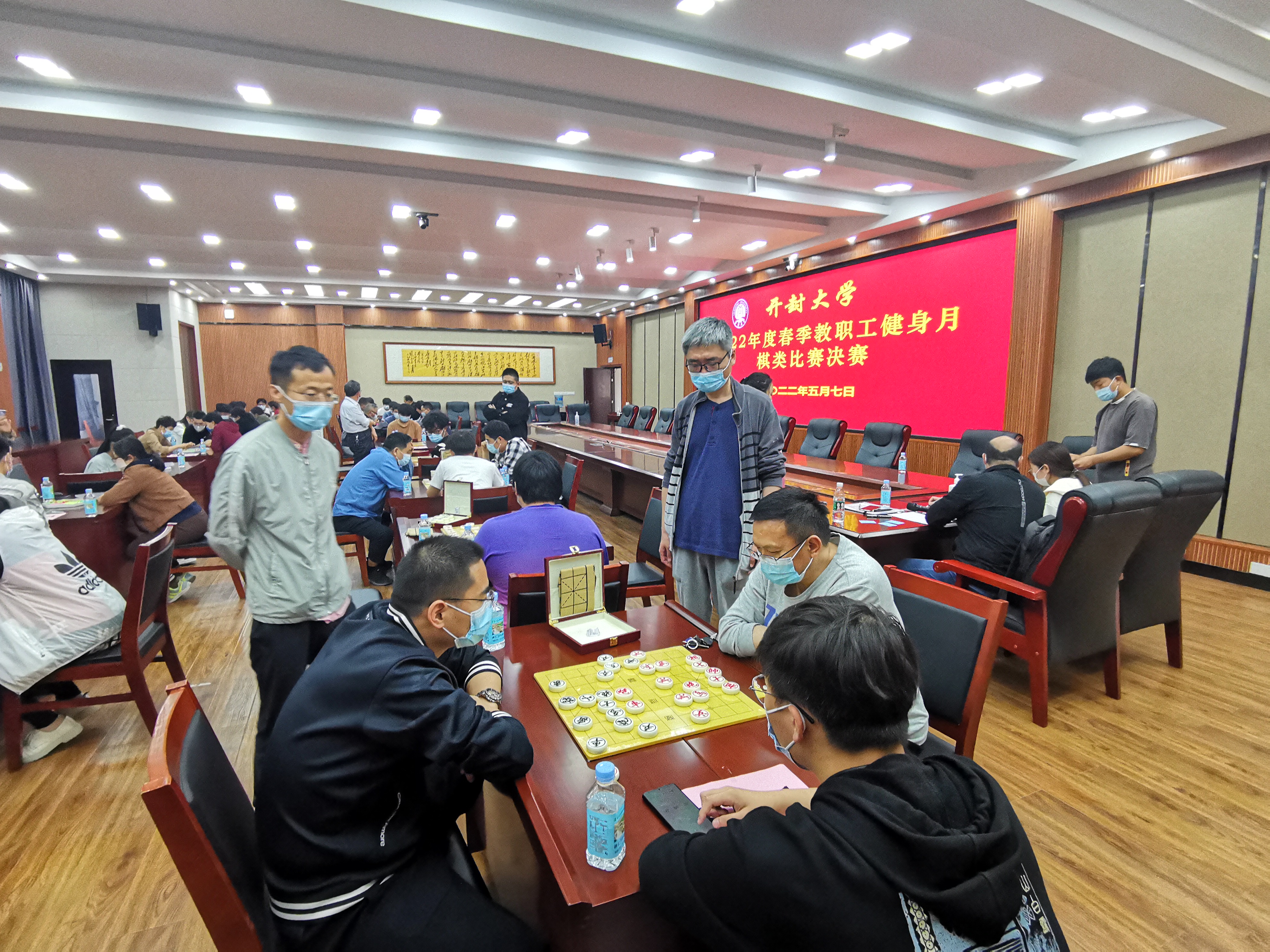 为弘扬传统文化,丰富教职工的课余文化生活,喜迎二十大胜利召开,5月7日,365官网工会在行政楼第二会议厅举办2022年度春季教职工健身月棋类比赛。