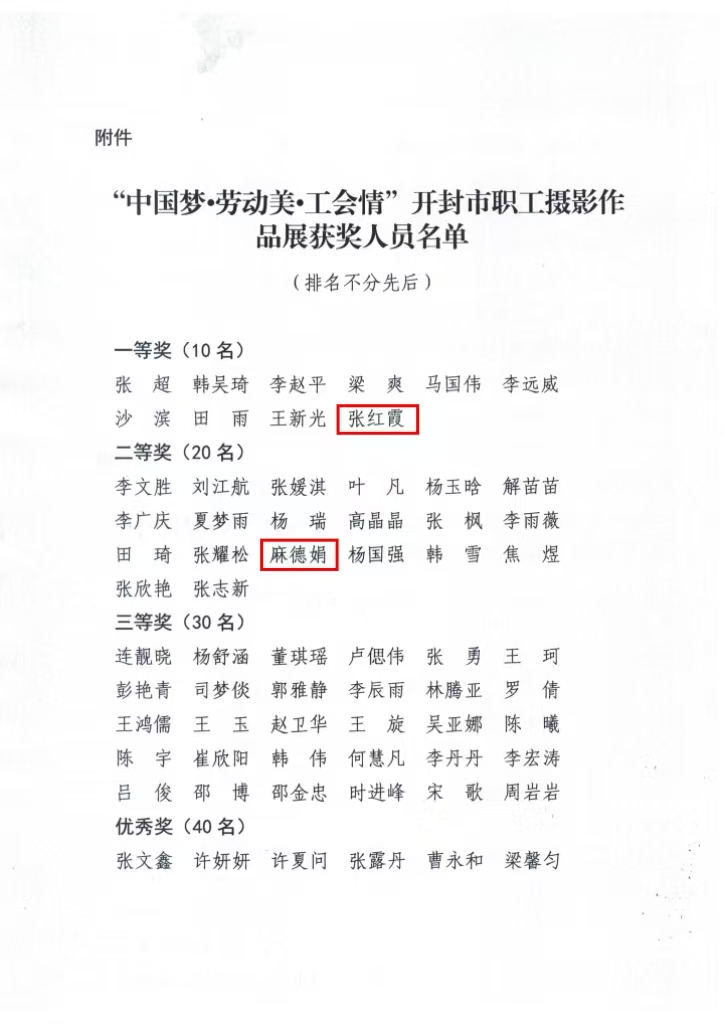 近日,“中国梦·劳动美·工会情”开封市职工摄影作品展获奖人员公布,365官网图书馆张红霞、审计处麻德娟两位老师分别获得一等奖、二等奖。