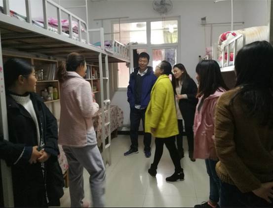 11月16日下午,国际教育学院党总支副书记吴文静、团总支书记刘青、辅导员贺钰老师以及学生会干部进宿舍,对我院在校学生宿舍进行卫生安全检查。