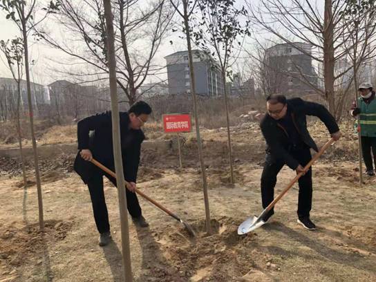 春回大地,万象更新,为美化校园环境,3月7日下午,国际教育学院党总支书记陈力、副书记赵骅带领我院部分师生积极参加学校组织的以“建绿色校园 尚劳动精神”为主题的植树节活动。