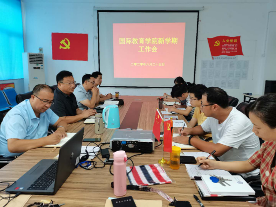 为深入贯彻落实学校新学期工作会议精神,8月25日上午,国际教育学院在学院会议室召开了新学期工作会议,会议由学院党总支书记陈力同志主持,学院全体教职工参加了会议。