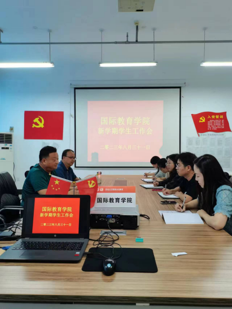 831日下午,国际教育学院召开了新学期学生工作会议,对新学期相关工作做出了部署,对各位辅导员提出了具体工作要求,党总支书记陈力、副书记赵骅出席会议并讲话