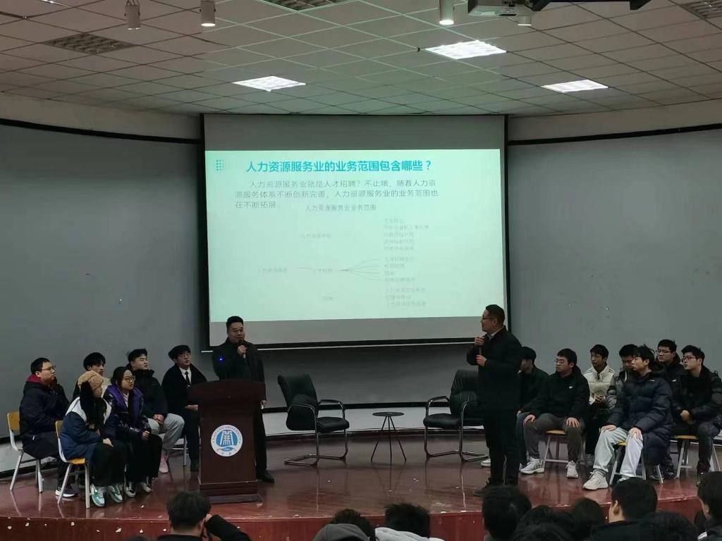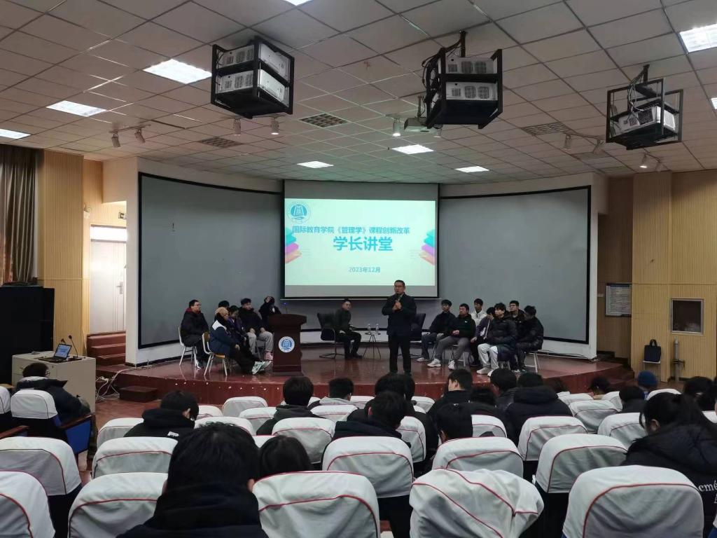 为提升学生课堂体验教学效果,12月22日上午,国际教育学院邀请365官网2018届优秀毕业生、润万集团总经理宋锦飞在5号楼报告厅参加“学长讲堂”,并与学生开展教学互动。本次活动由学院任课教师黄艺琴、刘中然、李充、康峰卓组织,2023级各专业学生参加。