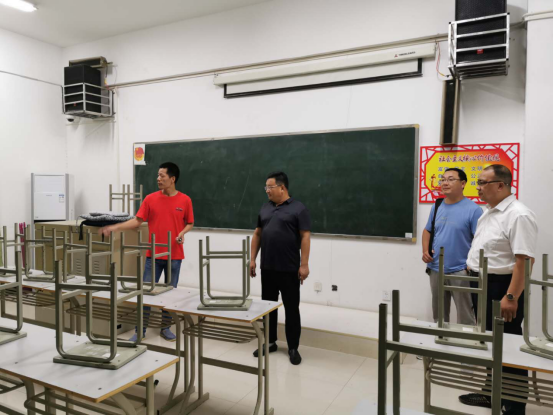 本批次返校学生须在校封闭管理七天,为保证毕业生返校及在校期间工作顺利开展,学院制定了“国际教育学院2019-2020学年第二学期专升本学生返校方案”,并成立了国际教育学院学生返校工作组,在学校疫情防控工作领导小组和学生返校工作组统一领导下开展工作。返校当天,党总支书记陈力、院长袁长征、党总支副书记赵骅、副院长蒋大山带领相关老师前往15号教学楼查看学生学习教室的分配情况,前往学生宿舍查看学生的住宿条件以及需要解决的问题,确保学生在校封闭期间的学习、生活正常进行。另外,学院对每位教师安排了具体工作,并制定了“专升本学生”在校期间网格化管理体系,确保2020届毕业生顺利考试、文明离校,确保校园的和谐稳定。