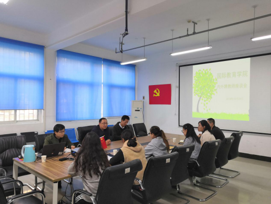 1029日下午,国际教育学院在17号楼114会议室召开内外聘教师座谈会。院长袁长征、副院长蒋大山、教学秘书王赛以及本学期的内外聘教师参加了此次座谈会。
