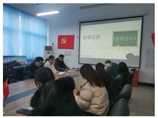 本次5名开新课的教师——许亚威、康峰卓、殷晓雅、方贤军和王沐昕——分别《会计职业道德》、《审计实务》、《管理会计实务》、《智慧化成本核算与管理》《英语听说(2)》课程,从课程理解到教学思考,从学情分析到教材分析,从教学方法到考核方法,进行了全方位的说课和试讲。老师们准备充分,思路清晰,能熟练运用多媒体教学手段和网络课程资源,突出了课程的重难点。