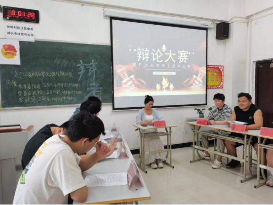 辩论赛分三组进行,学生围绕“银行大客户办理业务时是否需要排队”、“维护老客户更重要还是开发新客户更重要”、“在企业管理中员工和客户哪个更重要”三个辩题进行激烈的辩论。辩论赛分为开篇陈词、自由辩论、总结陈词三个阶段,辩论过程中,选手们雄辩滔滔,妙语连珠,台下同学凝神聆听,掌声不断,精彩写满每一时刻。