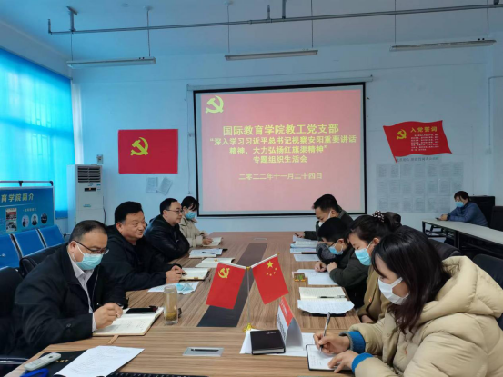 国际教育学院教工党支部召开“深入学习习近平总书记视察安阳重要讲话精神,大力弘扬红旗渠精神”专题组织生活会