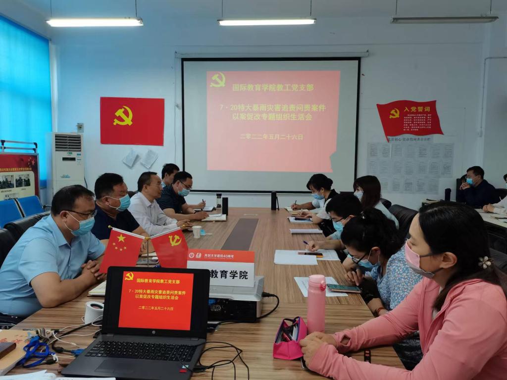 国际教育学院教工党支部召开郑州7.20特大暴雨灾害追责问责案件以案促改专题组织生活会
