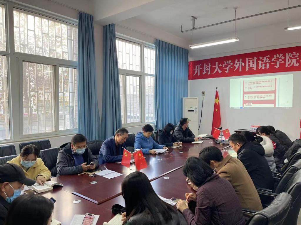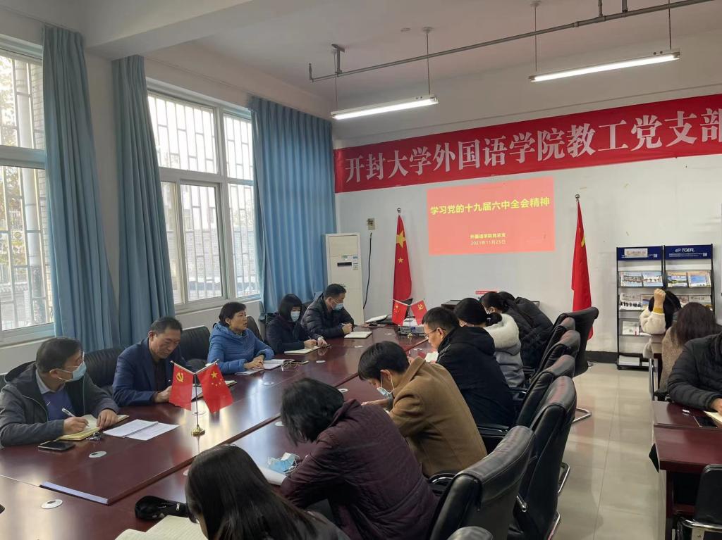 11月25日下午,外国语学院党总支组织全体教职工学习党的十九届六中全会精神,会议由外国语学院党总支宣传委员、副院长韩超同志主持。