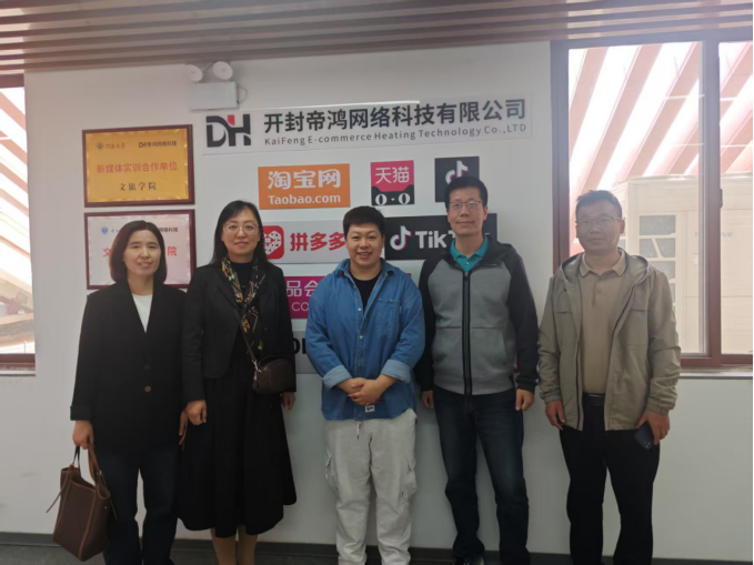 2025年4月15日上午,国际教育学院(外国语学院)书记程欣、院长蒋大山、副院长沈二波以及跨境电商教研室主任等一行四人赴开封帝鸿网络科技有限公司开展访企拓岗活动,与公司总经理刘金玉进行合作洽谈。
