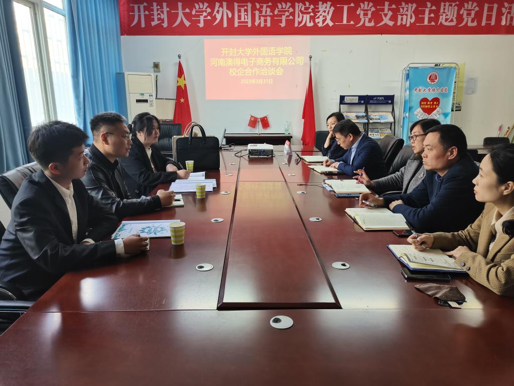 3月31日上午,外国语学院与河南澳得电子商务有限公司在学院会议室举行校企合作洽谈会,院长程欣及学院相关负责人参加了座谈。 洽谈会上,院长程欣向企业一行人的到访表示热烈欢迎,并就学院专业特色、人才培养...