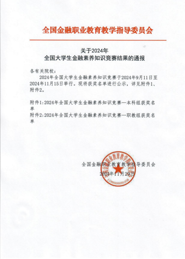 The 2024 National Financial Literacy Knowledge Contest for College Students was organized by the National Teaching Guidance Committee for Financial Vocational Education, and more than 10,000 teachers and students from nearly 200 colleges and universities applied for the contest. During the preparation for the competition, the instructor,Bo Lina, organized regular professional training and experience sharing to help improve students’professionalism and practical ability.