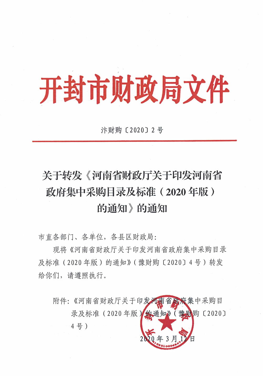 豫财购﹝2020﹞4号河南省财政厅关于印发河南省政府集中采购目录及标准(2020年版)的通知