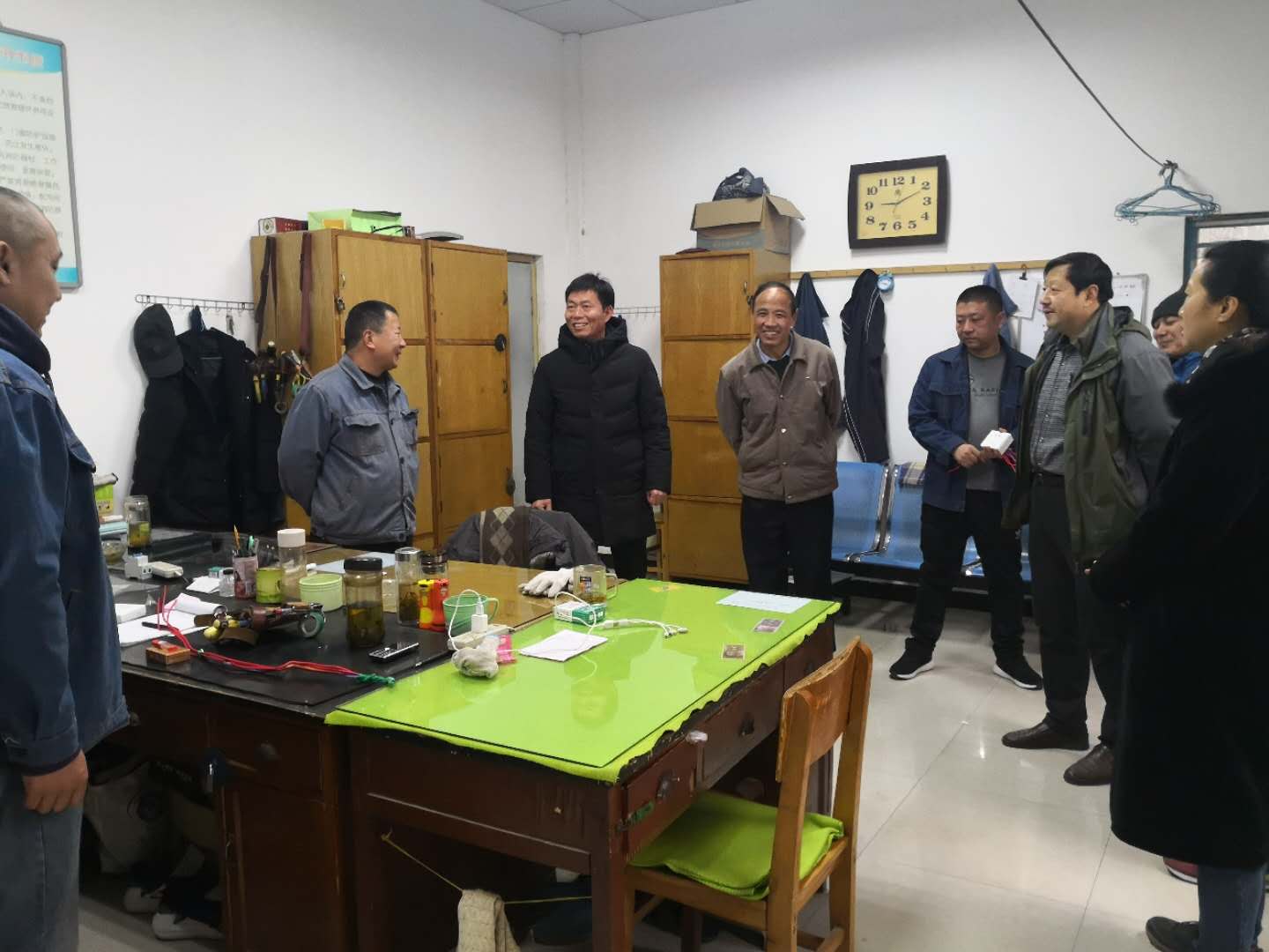 徐主任一行每到一处,都详细询问员工们的工作和生活等情况,了解他们在工作和生活中遇到的困难,并对在走访过程中发现的不合适宜的情况进行耐心讲解和教育,对存在安全隐患的区域要求相关人员及时整改。同时,对校园、楼内卫生和水电木设施也进行了安全排查和记录并安排维修人员进行及时修复。