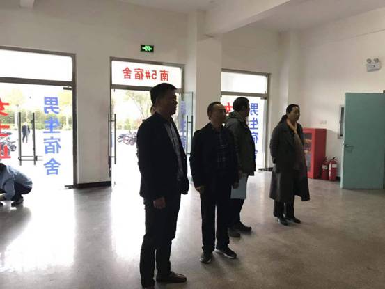 李校长一行人从行政楼出发,沿校园主干道环校检查。期间,对宿舍楼内部卫生和外部环境、花坛内垃圾死角、无障碍通道的完善、宣传标语的规范张贴等进行了重点检查。